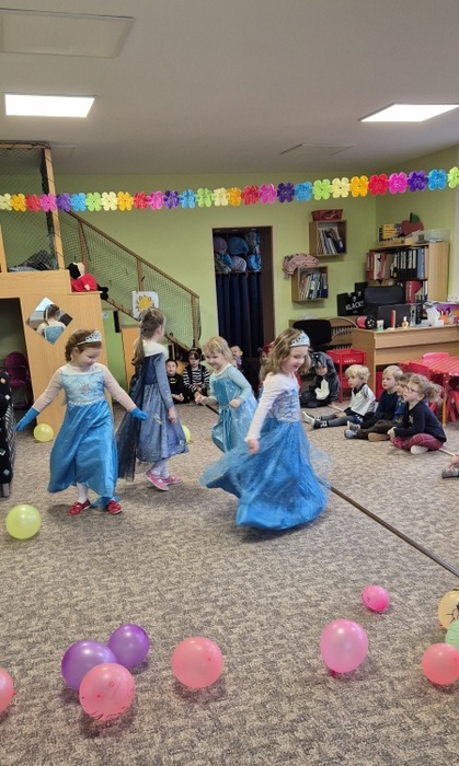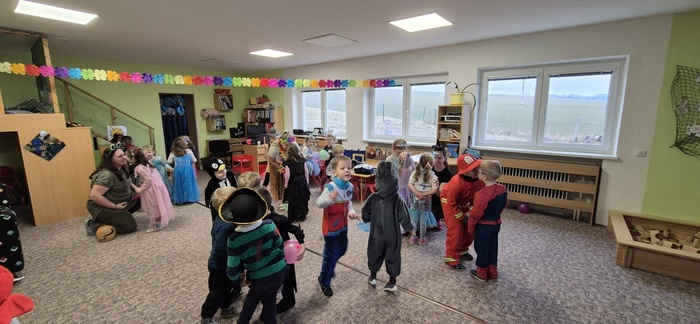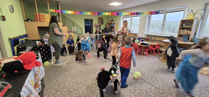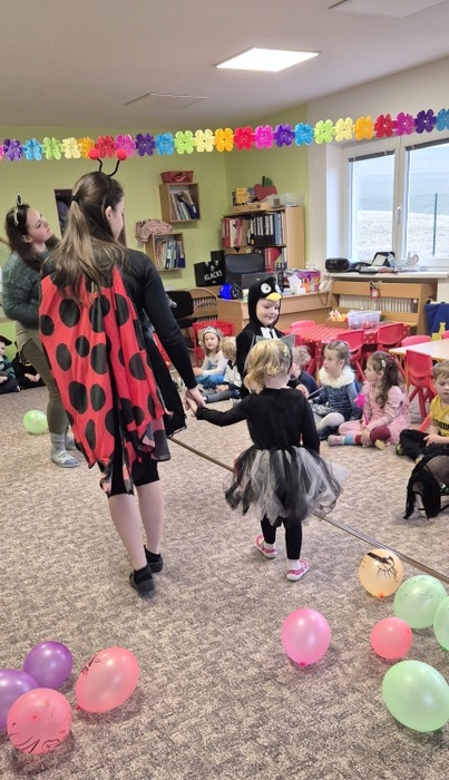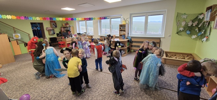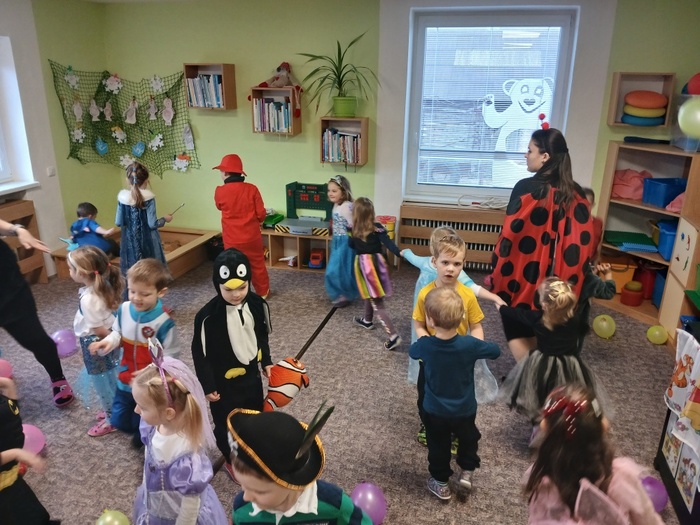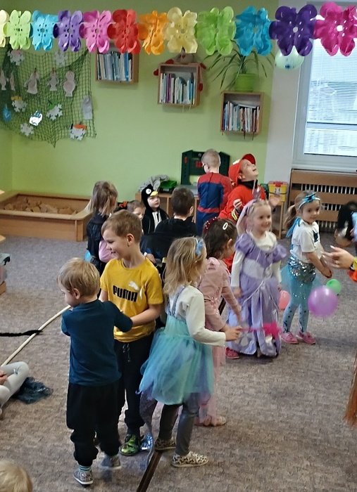 V pátek 7. 2. se děti mohly proměnit v princezny, piráty a další pohádková a kouzelná stvoření. Tento týden totiž probíhal karneval i u nás ve školce. Třída Včeliček navštívila Berušky a to byla zábava – různé tanečky hry a soutěže, prolézání pod lanem, tanec s balonky…Nechyběla ani promenáda masek s tematickými písničkami.
