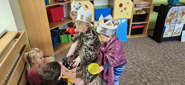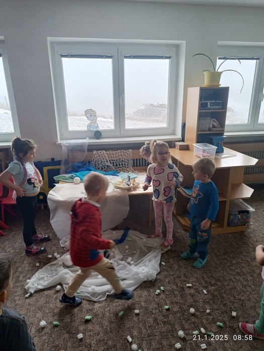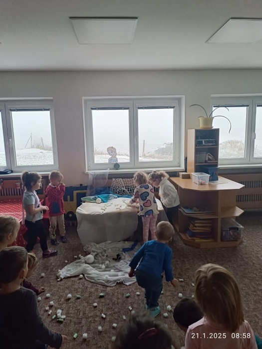 Dočkali jsme se nového roku a s ním i trošku sněhu, který si děti náramně užily. Oslavili jsme Tři krále, navštívili kostel, poznávali krásu Arktidy i ledového království.
